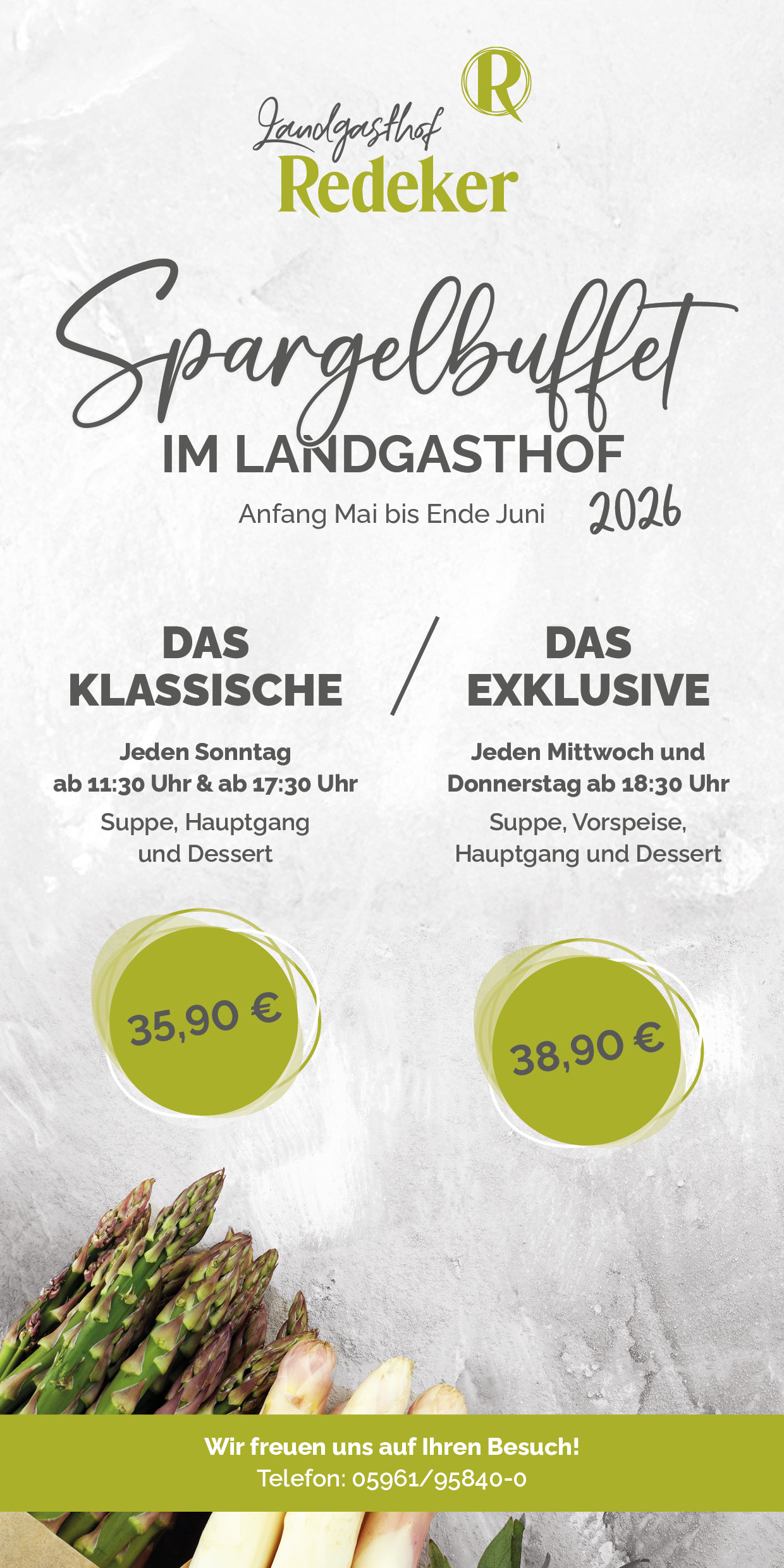 Ab So., den 3. Mai 2026 beginnen unsere beliebten Spargelbuffets: